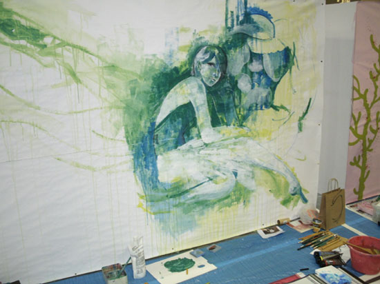 クリエーターズマーケット、yuさんのライブペイントでの作品です!! 2日かけて作品を描かれるのですが、城池は必ず1日目に見に行きます。 完成作品ももちろん生で見たいのですが、描かれてる経過が見れるのが やっぱりライブペイントの醍醐味じゃないですかぁー(>v< yuさんの作品、毎回見ると「あっ、なんかいつもと違う感じ」って思います。 でも見ていくうちに「あー、yuさんの作品だっ。」ってどんどんその世界に惹きこまれていくのです。 そういや今回yuさんに「城池さんは絵は描かれないんですか?」って聞かれましたが 「描かないです!」って答えちゃった(笑) だってウチおたくっぽいんですもん(>v<; 写真に撮らせていただいたのは 「なかなか目が入らない」って言われてて、途中まで描かれてた目を…上から白インクでペタッ!! 「おぉぅっ!!描き直しですか!!Σ(´□`;びくっ」 ってお話しをさせていただいてから数時間後。 ステキに入っていました♪ そして完成絵はyuさんのサイトにてぞうどー! http://michelle005.blogspot.com/ 毎回毎回yuさんの絵にべったりと惚れてしまいます。 あぁ・・・これぞ恋だ・・・。 作品と結婚させて頂けないものだろうか・・・。 そういやクリマが終われば作品ってどうなるんだろう?? このサイズでyuさんの作品をウチにほしぃなー・・・と妄想してみたりしているのです(笑) ※クリエーター様から写真掲載許可をいただいています。 |