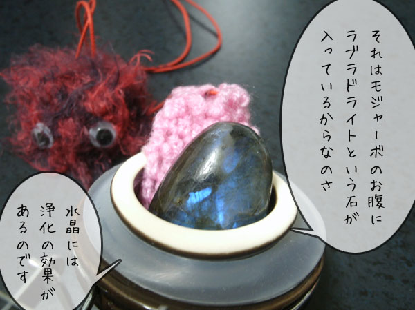 モジャーボのショートショートでした、あ、どうも城池です。 このこ、DOKURINGOのkazumiさん、zomさんに作っていただいた大切な相棒です。 カフェ香からラブラドライトがうちに来てくれた後で 首からさげられるようにって、作っていただいた、ウチのラブラド専用MSですね(笑) 赤いのできっと城池の3倍早いです!! またこういう写真漫画作ろうっと(^^* PR
